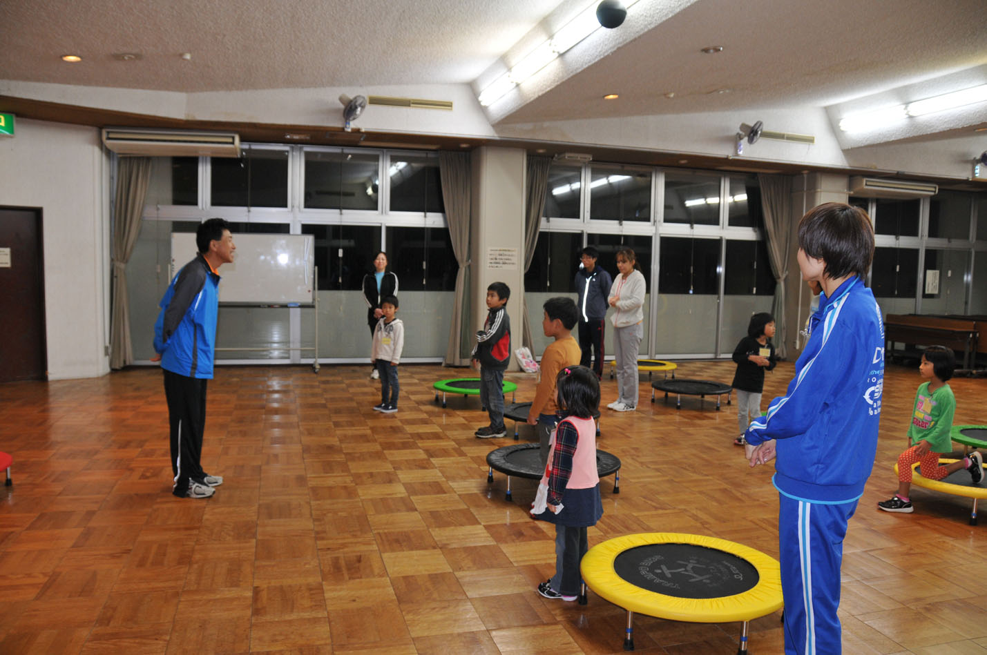 トランポリンと平均台も体験しました。平均台は高いので、最初は子どもたちもビビっていましたが、だんだんスムーズに動けるようになっていました。