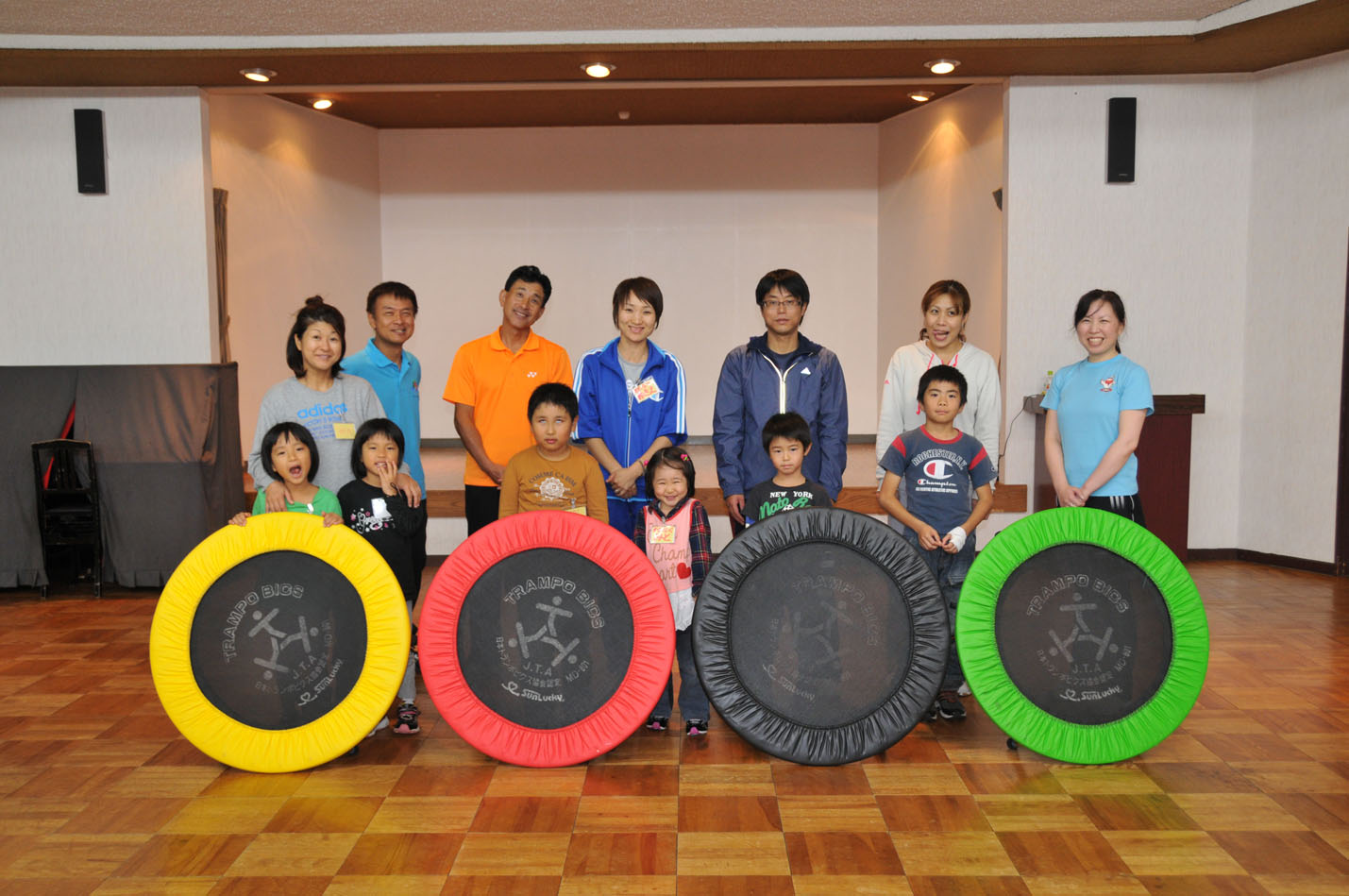 第1日目はトランポビクスの体験です。講師は、 日本トランポビクス協会コーチ渡辺和美様です。