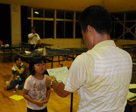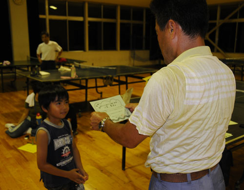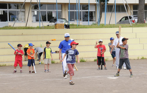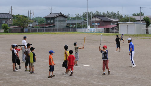 トーナメント戦の大会で男子は初戦、土底浜チームと対戦。接戦となったが惜しくも敗退した。女子は日ごろ練習を重ねる下小船津浜チームに一蹴(いっしゅう)される結果になった。それでも男子監督の石川博憲さんは「久しぶりの汗が心地よい。練習や試合を通じ、避難所仲間のまとまりがよくなりました」と笑顔。女子監督の由田(よしだ)香代さんも「こうやって出場機会を与えてもらって感謝しています」と喜んだ。